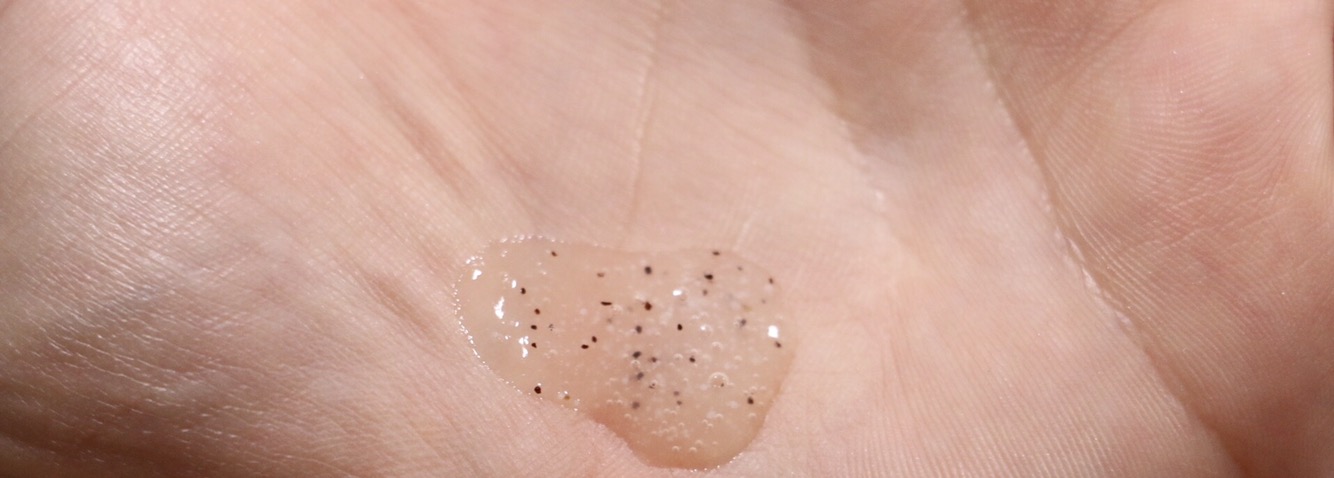 Enfin, on retrouve du syricalm qui est un actif naturel permettant de calmer les cuirs chevelus sensibles. Cela donne une texture gel blanche qui sent incroyablement bon la noix de coco et les îles avec des petites perles gommantes. J’ai tenté de vous faire un zoom pour que vous vous rendiez mieux compte de la texture.